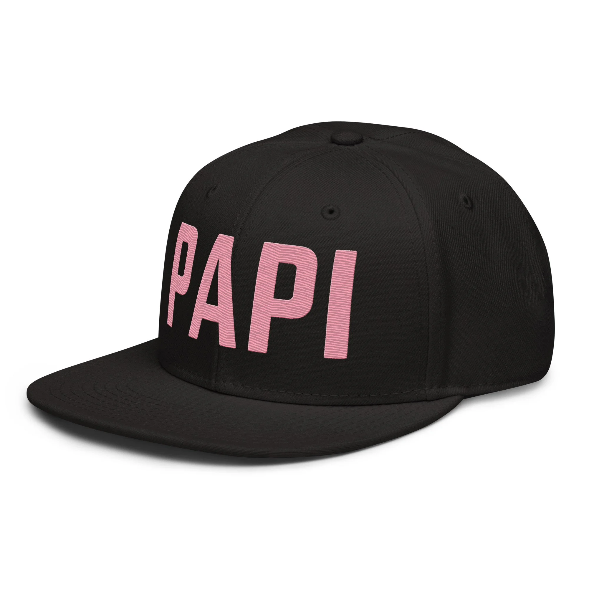 Black Snapback with Light Pink PAPI Embroidery